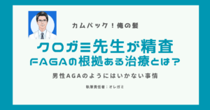 ここまで読んでいただくと、FAGAが男性のFAGAとは大きく異なることがわかると思います。